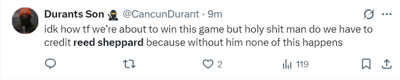 这场比赛火箭后卫里德-谢泼德登上了全美第三热搜,因为他这场比赛沉寂了三节后在末节最关键的时刻挺身而出,他单节12分帮助火箭逆转西部第二的马刺,火箭也拿到了三连胜。