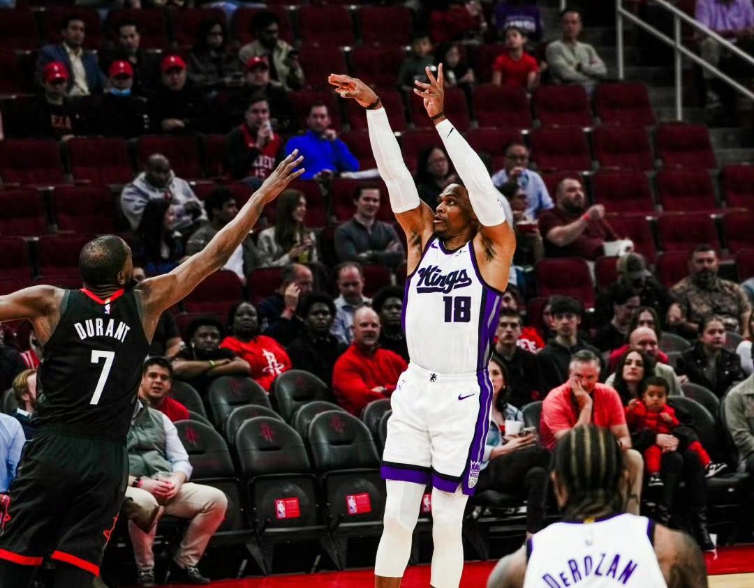 国王本场比赛其实发挥得并不差。威少一上来就火力全开,面对大哥杜兰特真有加成。首节11投8中狂砍17分,包括一个2+1,气势汹汹要咬碎火箭。但谢泼德很快站了出来,用精准的外线回应国王的攻势。之后火箭迅速祭出申京与谢泼德的挡拆配合,重现了经典的“15号位”起手式,首节结束时火箭已经以33比22领先11分。第二节,谢泼德的手感彻底爆发,三分线外接连命中,火箭一度将分差拉大到27分。下半场国王试图反扑,最多追到只差18分,但谢泼德和杜兰特立刻联手打出高潮回应,分差重回30分,比赛早早进入垃圾时间。谢泼德全场21投9中,砍下28分3篮板2助攻,其中三分球15投7中,刷新了个人单场三分纪录。